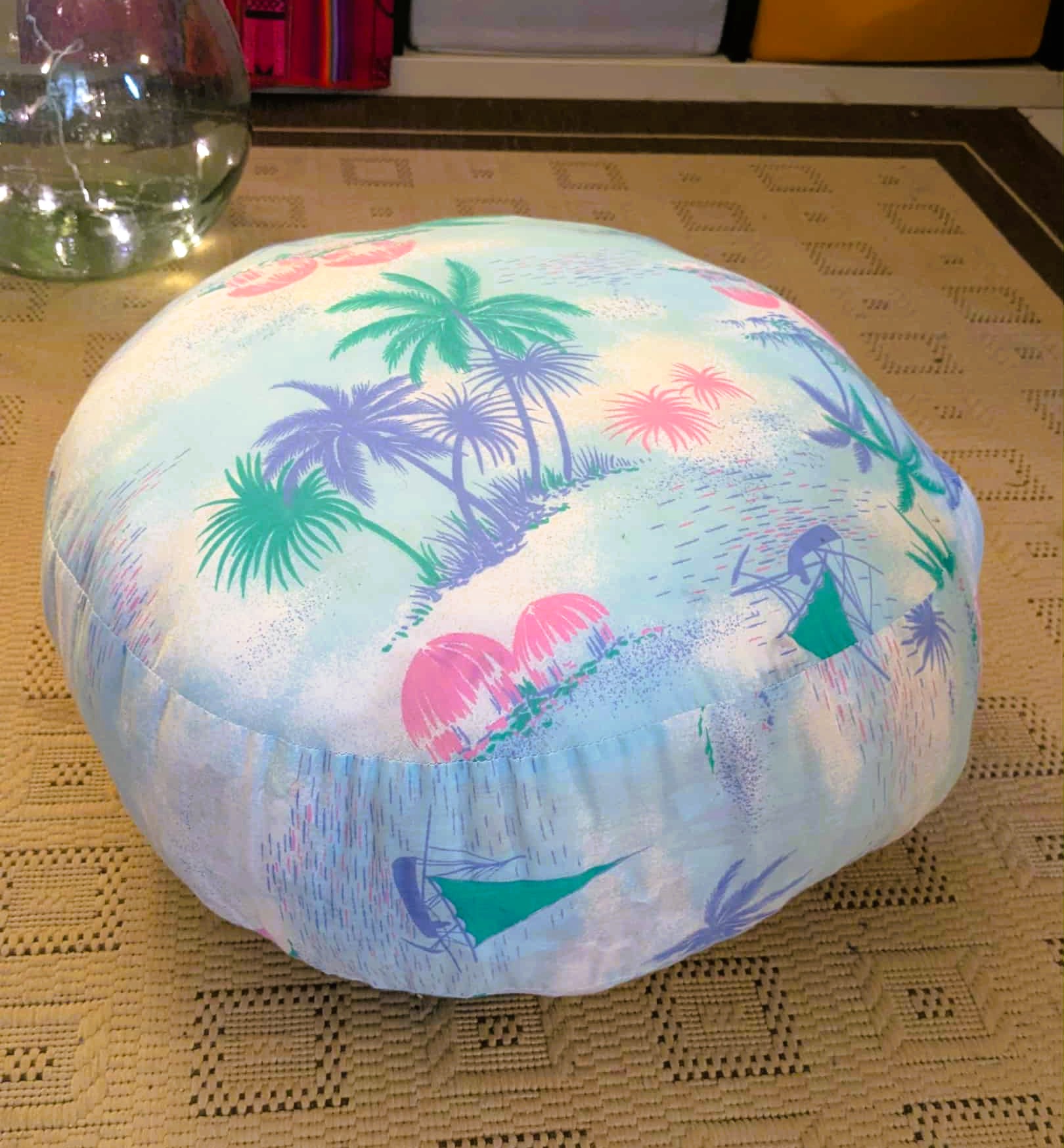 Ce coussin est conçu comme un objet de pratique durable et singulier. Le tissu est entièrement upcyclé, réalisé dans une chute de tissu d’ameublement, imprimé florale.