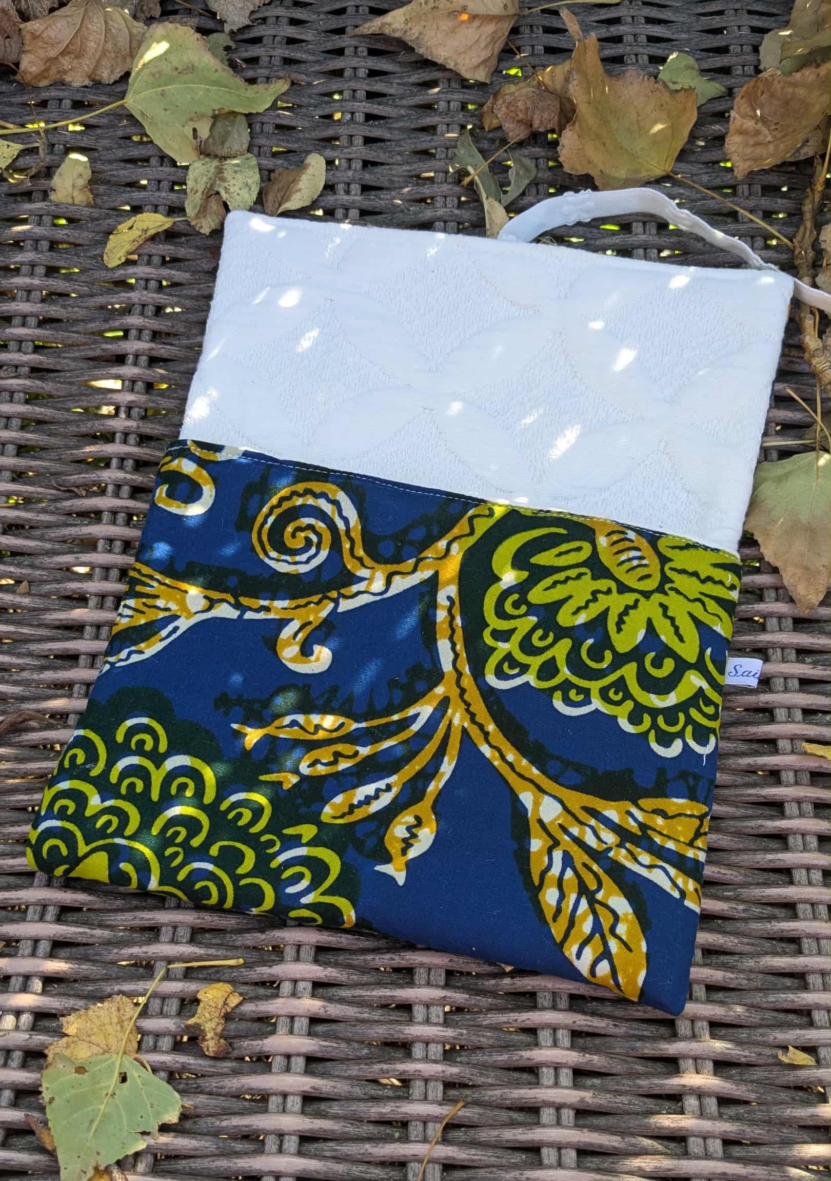 Protégez votre livre avec style et conscience. Chaque étui est réalisé à partir de chutes de tissu en tissu africain et d’échantillons de tissus d’ameublement soigneusement choisis pour leur tenue et leur texture.
